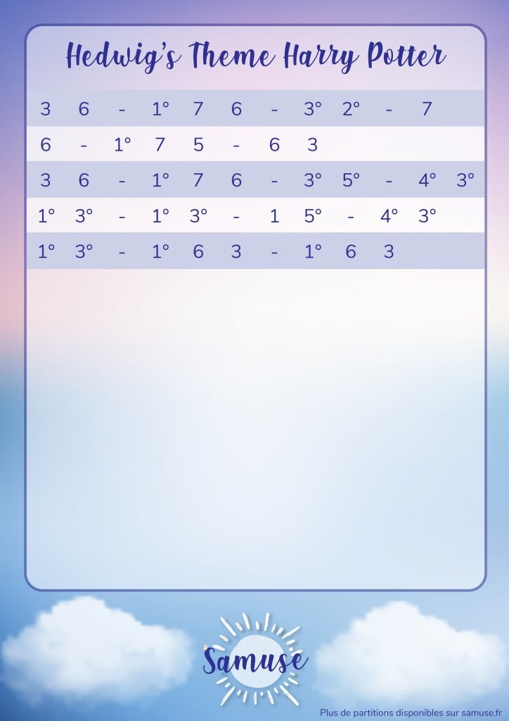 Partition Kalimba Harry Potter – Hedwig’s Theme Partition Kalimba crée par Samuse et les Samusiens. Pour partager vos partitions avec nous, rejoignez le Discord et envoyez vos partitions sur le channel #kalimba. No Older Articles Next Article Partition Kalimba Naruto Blue Bird - Ikimono Gakari